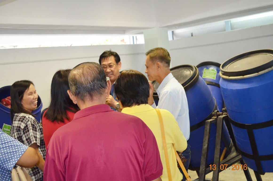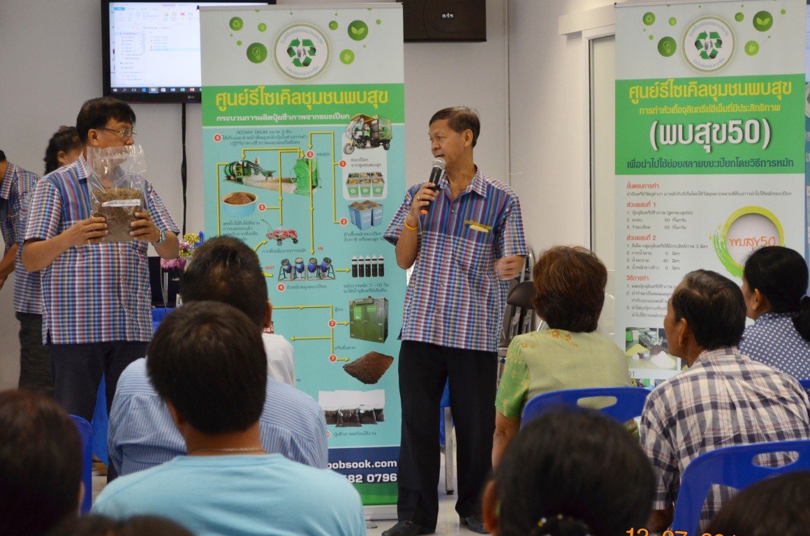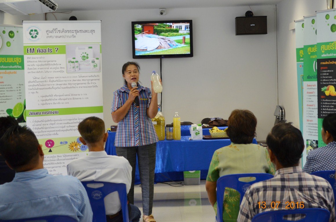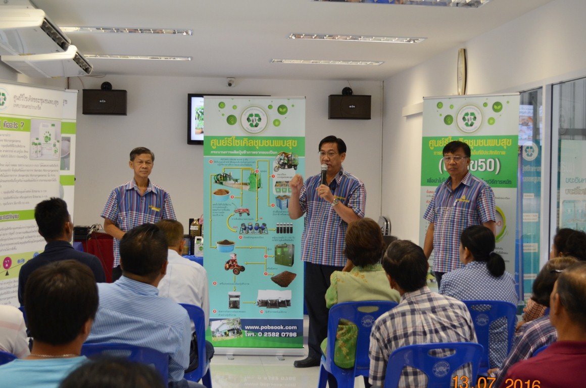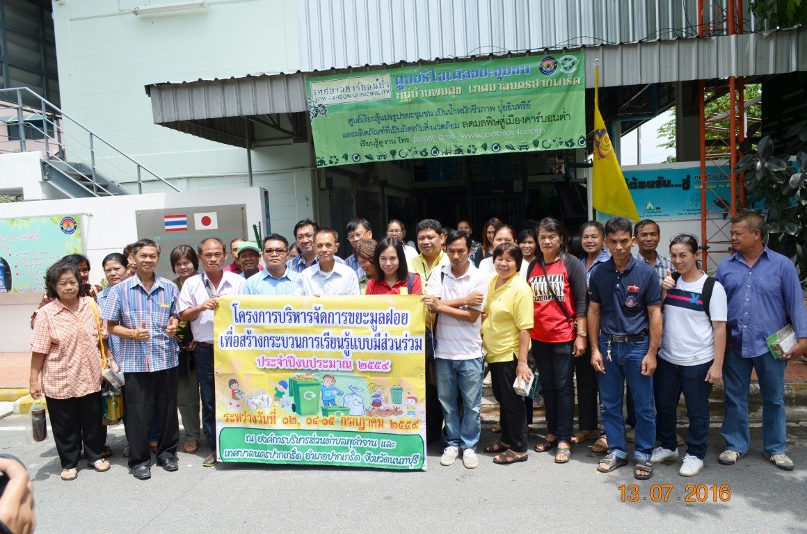 14กรกฎาคม 2559 ต้อนรับคณะศึกษาดูงาน อบต.พุคำจาน อ.พุทธบาท จ.สระบุรีมาศึกษาดูงานศุนย์รีไซเคิลขยะชุมชนพบสุข เรื่องการส่งเสริมการมีส่วนร่วมของชุมชนในการคัดแยกขยะตั้งแต่ต้นทาง ที่ศูนย์รีไซเคิลขยะชุมชนพบสุข เทศบาลนครปากเกร็ด