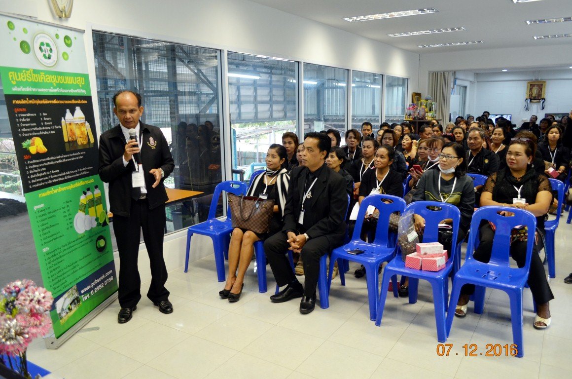 8/12/59 ต้อนรับคณะศึกษาดูงาน อบต.นาพรุ อ.พระพรหม จ.นครศรีธรรมราช ดูงานการจัดการขยะตั้งแต่ต้นทางในครัวเรือน ที่ศูนย์รีไซเคิลขยะชุมชนพบสุข
